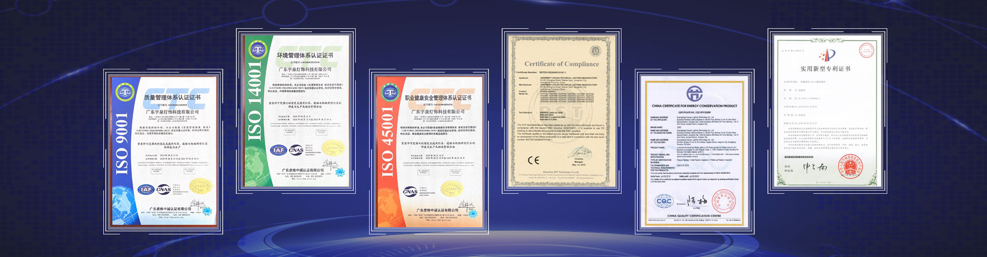 質(zhì)量方面:本廠產(chǎn)品質(zhì)量上乘,于 2006 年在行業(yè)率先通過國家 3C認證,2009年通過 ISO9001:2000質(zhì)量管理體系認證,目前產(chǎn)品已通過CQC、3C 認證,通過GB/T28001-2011/OHSAS18001:2007 職業(yè)健康安全管理體系認證:通過 GB/T24001-2016/ISO 14001:2015 環(huán)境管理體系認證:通過歐盟 CE 認證及 ROHS 認證,并榮獲《中國著名品牌》,2016 年1月獲得廣東省產(chǎn)品質(zhì)量示范企業(yè),于2017年榮獲高新技術(shù)企業(yè)稱號,2018 年工礦燈獲得國家防爆認證,公司獲得‘城市及道路照明工程專業(yè)承包叁級’資質(zhì),--榮獲廣東省重合同守信用企業(yè),2019 年榮獲中國節(jié)能產(chǎn)品認證證書并進入國家政府采購目錄清單;我們堅持以高要 求、高標(biāo)準(zhǔn)、高品質(zhì)的質(zhì)量標(biāo)準(zhǔn)來設(shè)計、生產(chǎn)和施工;產(chǎn)品 合格率達到100%,在同行及海內(nèi)外建立了良好的聲譽。